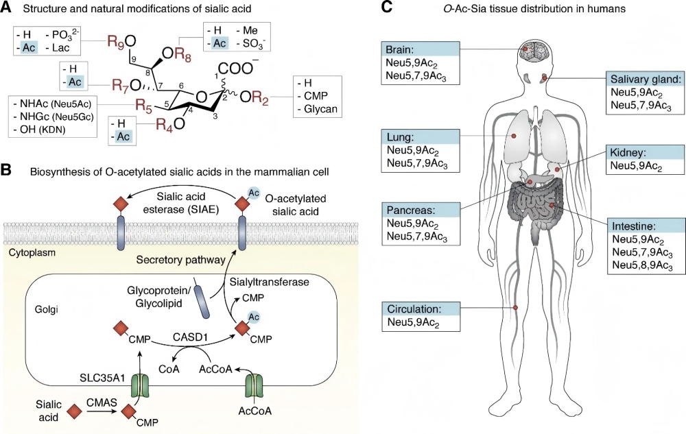 Sialata acido ludas gravajn rolojn en cerba disvolviĝo, imunoreguligo, ĉela signalado kaj haŭta sano. En la homa korpo, ĝi estas tre koncentrita en la cerbo, kie ĝia nivelo estas proksimume 15-oble pli alta ol tiu de visceraj organoj kiel la hepato aŭ pulmoj.