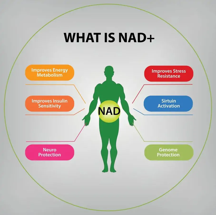 NAD+ (นิโคตินาไมด์อะดีนีนไดนิวคลีโอไทด์) เป็นโคเอนไซม์สำคัญที่เกี่ยวข้องกับปฏิกิริยาเมตาบอลิซึมหลายร้อยปฏิกิริยา บทบาทหลักของมันคือการกระตุ้นการผลิตพลังงานของไมโทคอนเดรีย และควบคุมกระบวนการทางชีวภาพที่เกี่ยวข้องกับการซ่อมแซมดีเอ็นเอ ความยืดหยุ่นของเซลล์ และการแก่ชราอย่างมีสุขภาพดี หากขาด NAD+ เซลล์จะสูญเสียพลังชีวิตและความสามารถในการรักษาสมดุลของร่างกายจะลดลง